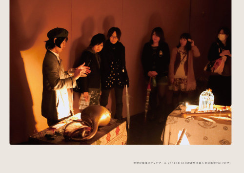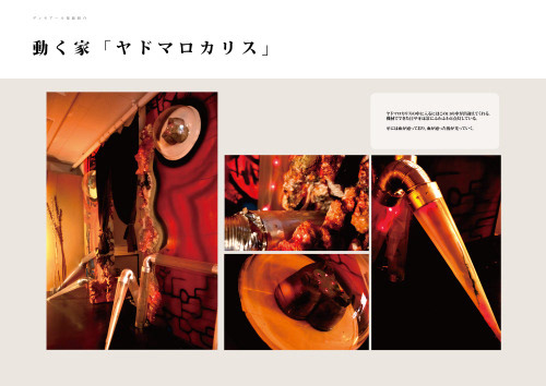 ヤドマロカリスに乗って旅をする空想民族が大学に訪れたという設定の空間パフォーマンスを行いました。