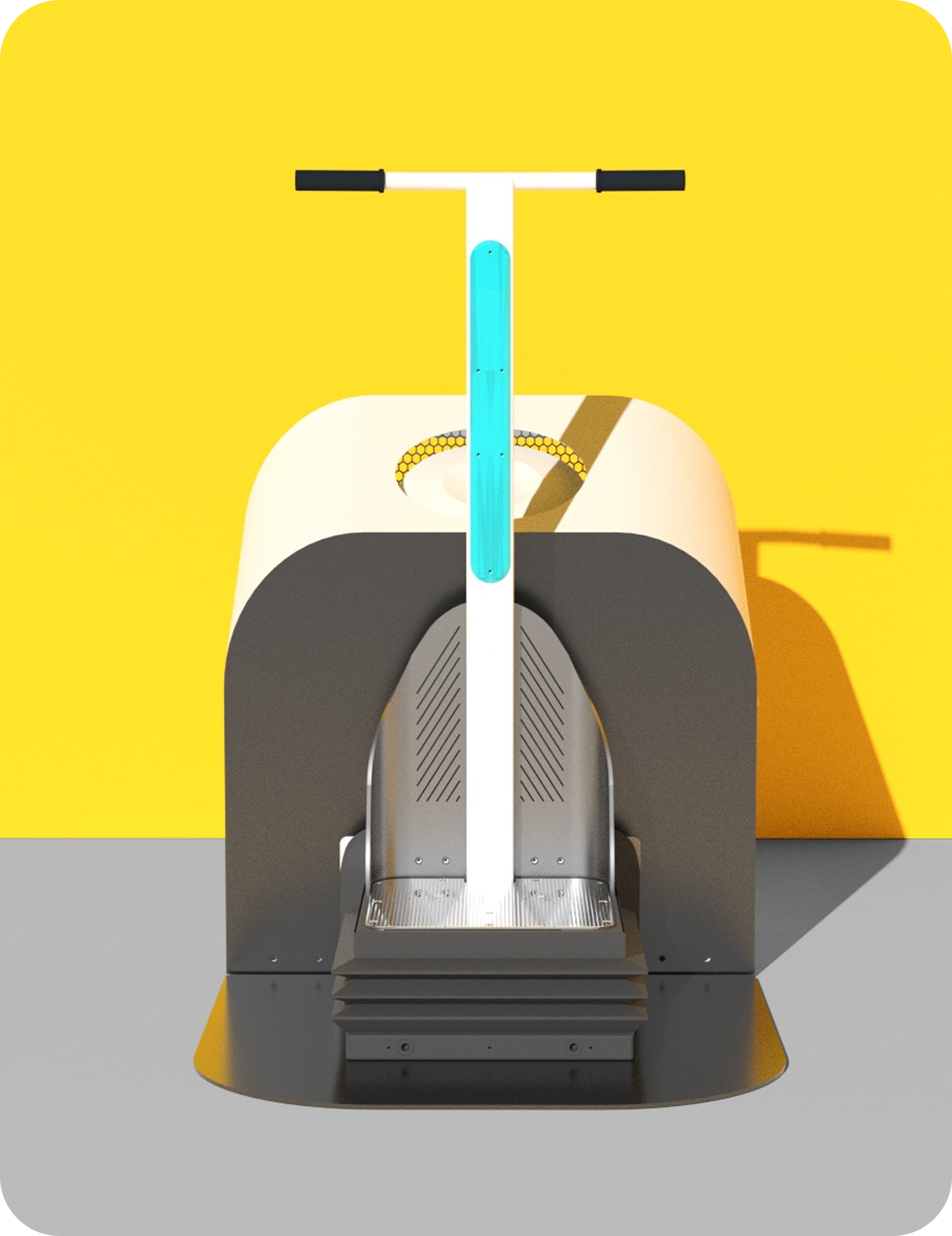 「キックウェイ」はハシラスがVRコンテンツ向けに開発したパーソナルモビリティ型モーションシミュレーター。